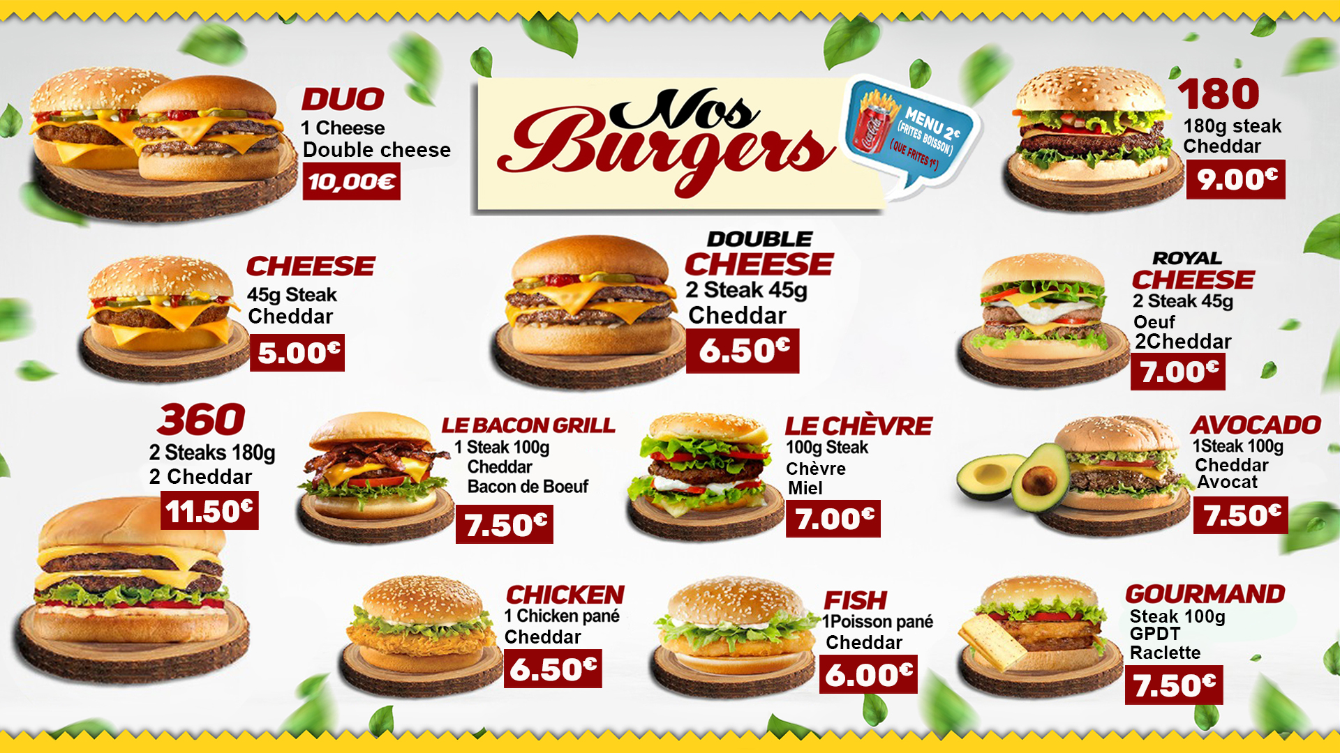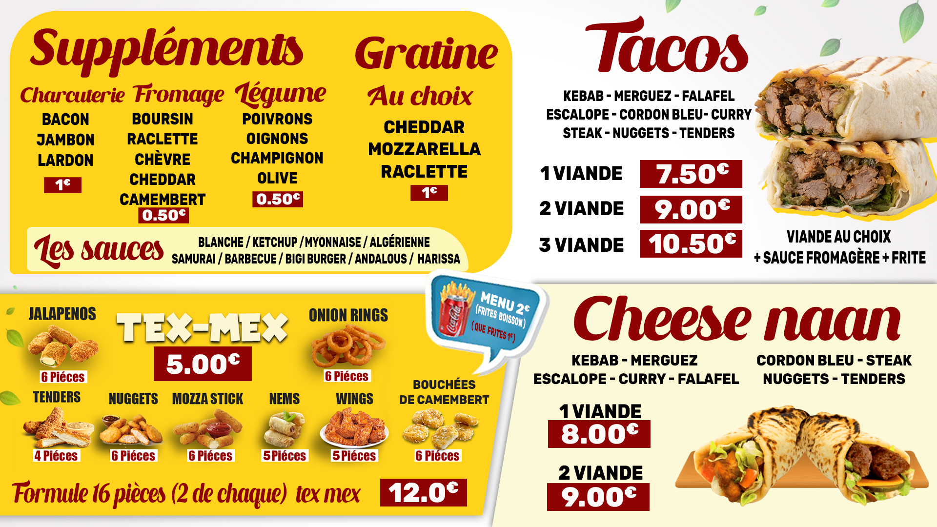 Un large choix assiettes Kebab, chicken, merguez